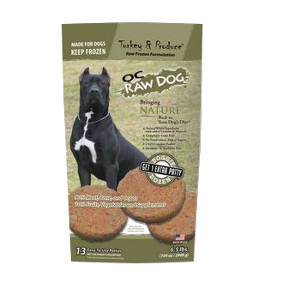 Oc Raw Dog Turkey Produce Patties 6 5 Lb Thatpetplace Com